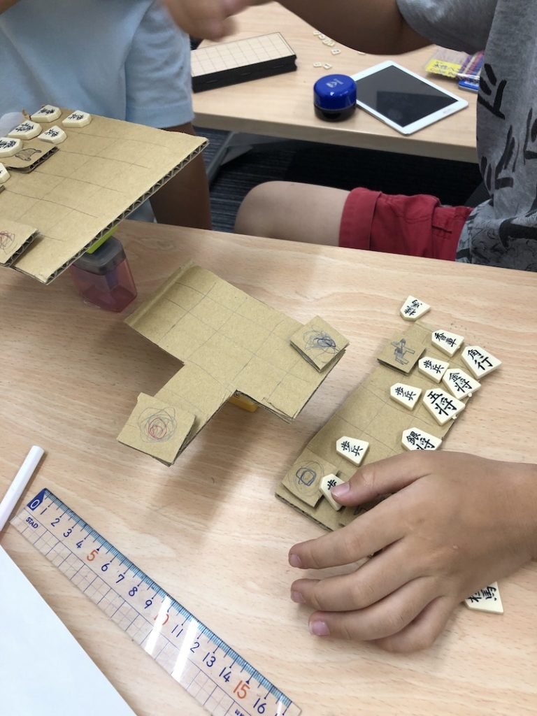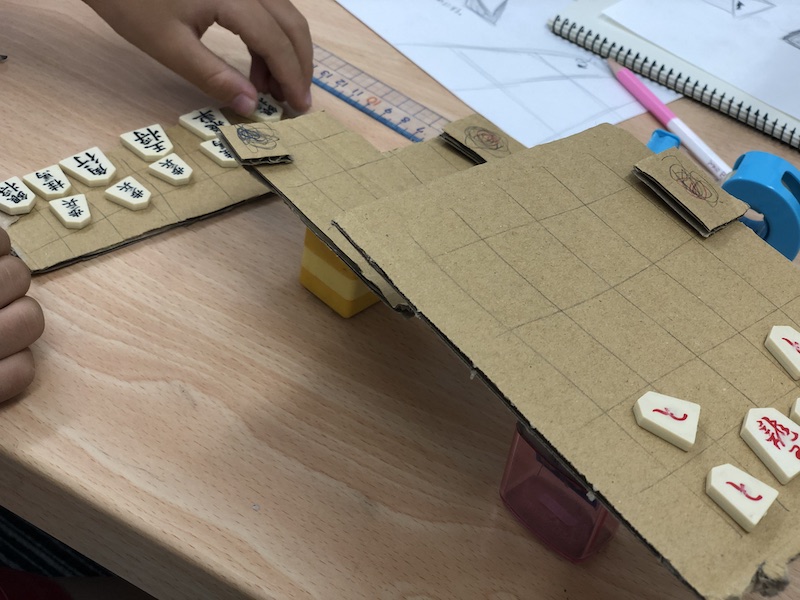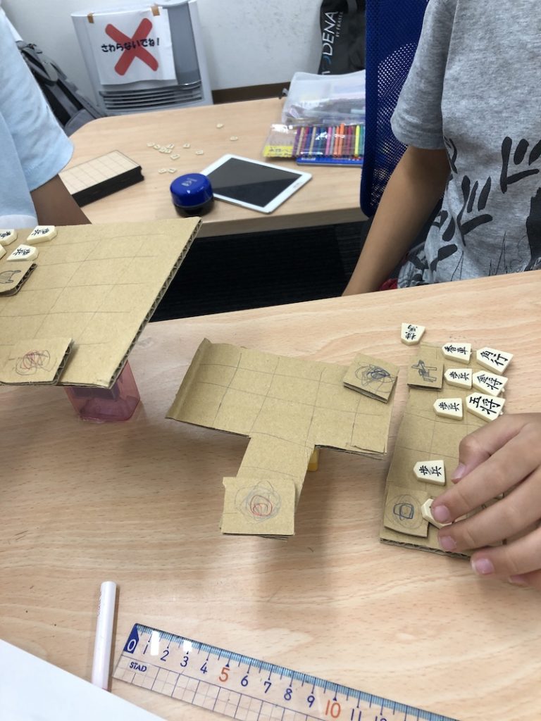 どんな形がいいか、まず考えます。コマはまだ作成していないので、将棋のコマで代用。