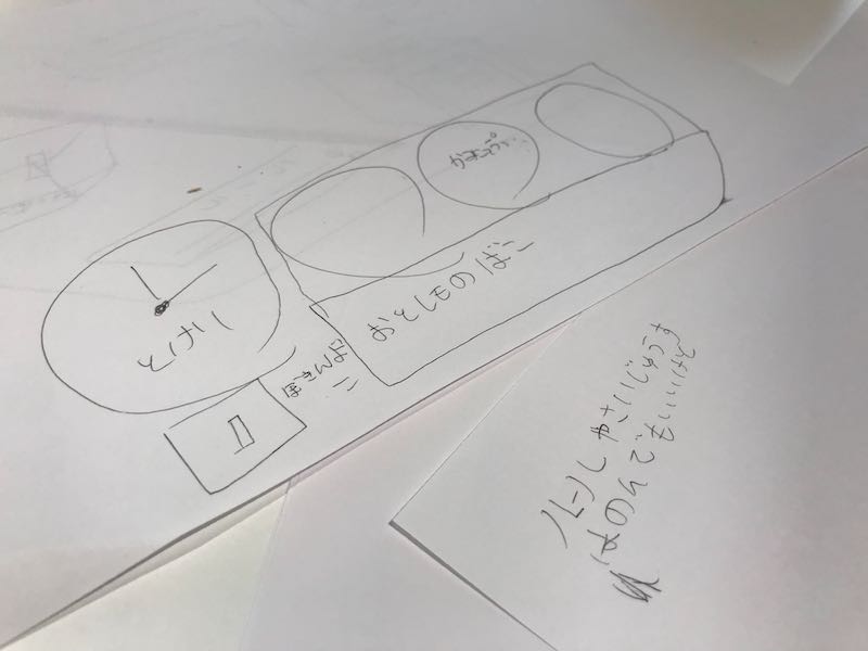 家の中で落とし物を拾ったら「落とし物箱」に入れます。落とし主がそれを落とし物箱で見つけた場合は5円募金。家の中を片付けておくメリットが生まれ、「なくしたものが置いてある場所」が生まれることで、落とした人も探し回らなくても済むかもしれない。5円はお礼として入れておくけれども、次回からは落とさないように気をつけるかもしれない。そんな、みんながハッピーになる時計になりました!