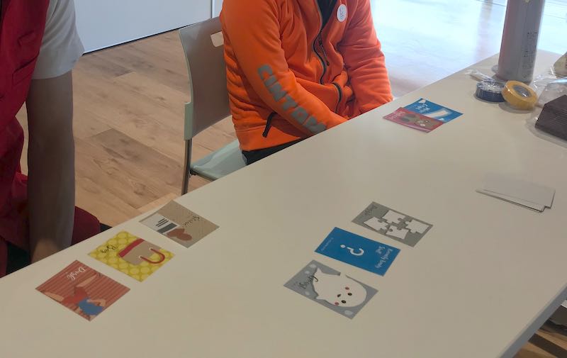 まず、いきなり本題に入る前に頭を柔らかくしていきます。(このカードゲームは、これからダビンチクラブの起業体験プログラムには必ず登場しますのでお楽しみに。)すごく盛り上がったところで、そのまま時計のアイデア出しを、同じカードゲームを使って行います。